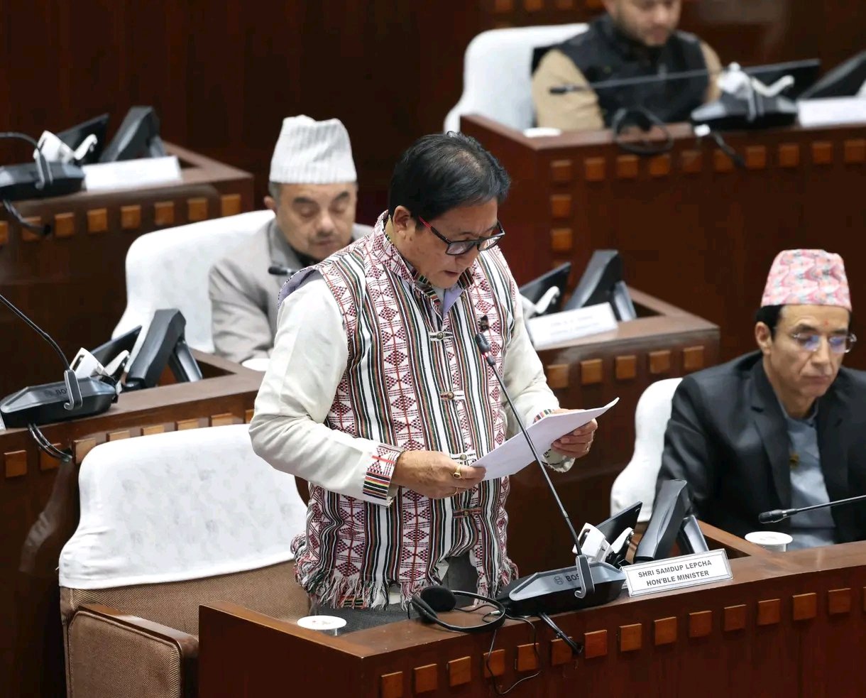 Gangtok, 12th December: Social Welfare Minister Samdup Lepcha today tabled the B.V. Sharma–led Sikkim State High-Level Committee report on the inclusion of the 12 left-out communities (Bhujel, Gurung, Jogi, Kirat Khambu Rai, Kirat Dewan (Yakha), Khas (Chhetri-Bahun), Mangar, Newar, Sanyasi, Sunuwar (Mukhia), Thami, and Majhi) during the special session of the Sikkim Legislative Assembly. The House unanimously passed the resolution, marking a major step in the long-pending demand for recognition.